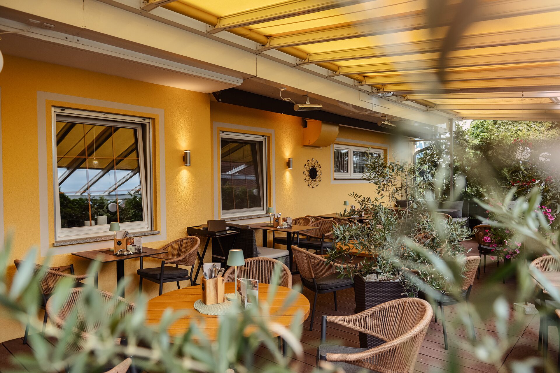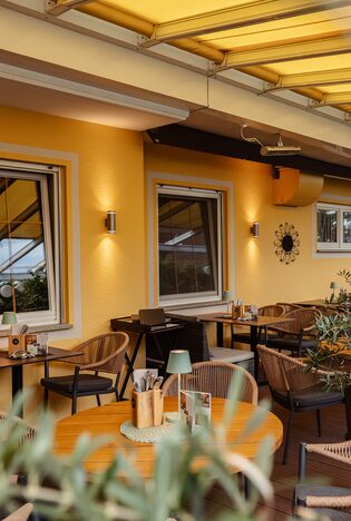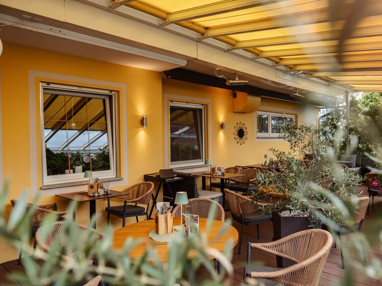 Genießen Sie die schönen Tage auf unserer Sonnenterrasse, die für bis zu 55 Personen Platz bietet. Für die Abendstunden sorgen Dauer-Heizstrahler für eine angenehme Wärme, damit Sie Ihren Aufenthalt bei uns voll auskosten können.