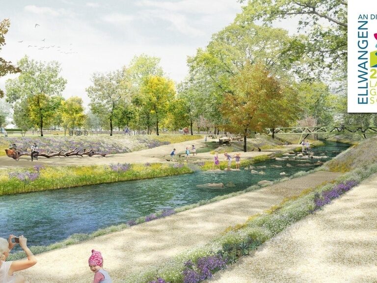 „Ellwangen an die Jagst“: Unter diesen Slogan hat die Stadt Ellwangen, die als „Ellwangen an der Jagst“ den Fluss schon im Namen trägt, die Landesgartenschau 2026 gestellt. Urbane Nutzung und freie Natur sollen sich ergänzen. Die Stadt und der Fluss sollen vom Großprojekt wechselseitig profitieren.